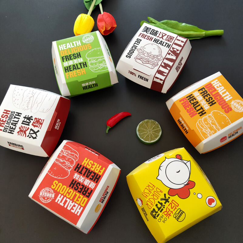 漢堡盒是一種用于包裝和運輸漢堡的紙盒。漢堡盒的主要作用是保護漢堡不受到污染和變形,同時也可以增加漢堡的附加值和美觀度。一般來說,漢堡盒的材質使用的是環保性好的紙板和紙質材料,具有一定的強度和耐壓性,同時也可以進行印刷和設計,以滿足不同消費者的需求。漢堡盒的形狀一般類似于長方體,頂部有折疊式的蓋子,可以方便打開和取用。在商業運營中,漢堡盒不僅能夠保證食品的品質和衛生安全,還可以在視覺上提高產品的吸引力,為企業帶來更好的銷售收益。