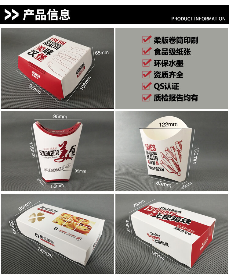 漢堡盒的成型有多種方法,其中常見的一種是壓花成型。具體步驟如下:1. 切割紙張:將食品級別的紙張按照漢堡盒的尺寸進行切割,需要注意精度和平整度。2. 印刷圖案:使用食品級別的油墨,在紙張上印刷漢堡店的LOGO、品牌名字或其它圖案等。3. 折疊壓紋:將印刷好的紙張經過折疊,形成折痕,以便于后續的成型。隨后,將折痕處的紙張放入專用的壓花機器中,壓出所需的形狀和花紋。4. 粘合膠水:將已經成型的漢堡盒的邊緣涂上食品級別的膠水,進行粘合,這樣就完成了漢堡盒的成型過程。整個漢堡盒生產的過程需要使用多種設備和工具,如印刷機、裁切機、折疊機和壓花機等,還需要工人進行操作。在生產漢堡盒的過程中,為確保產品的衛生安全性,需要嚴格掌控每個環節,并將工藝流程等信息進行記錄和追溯。